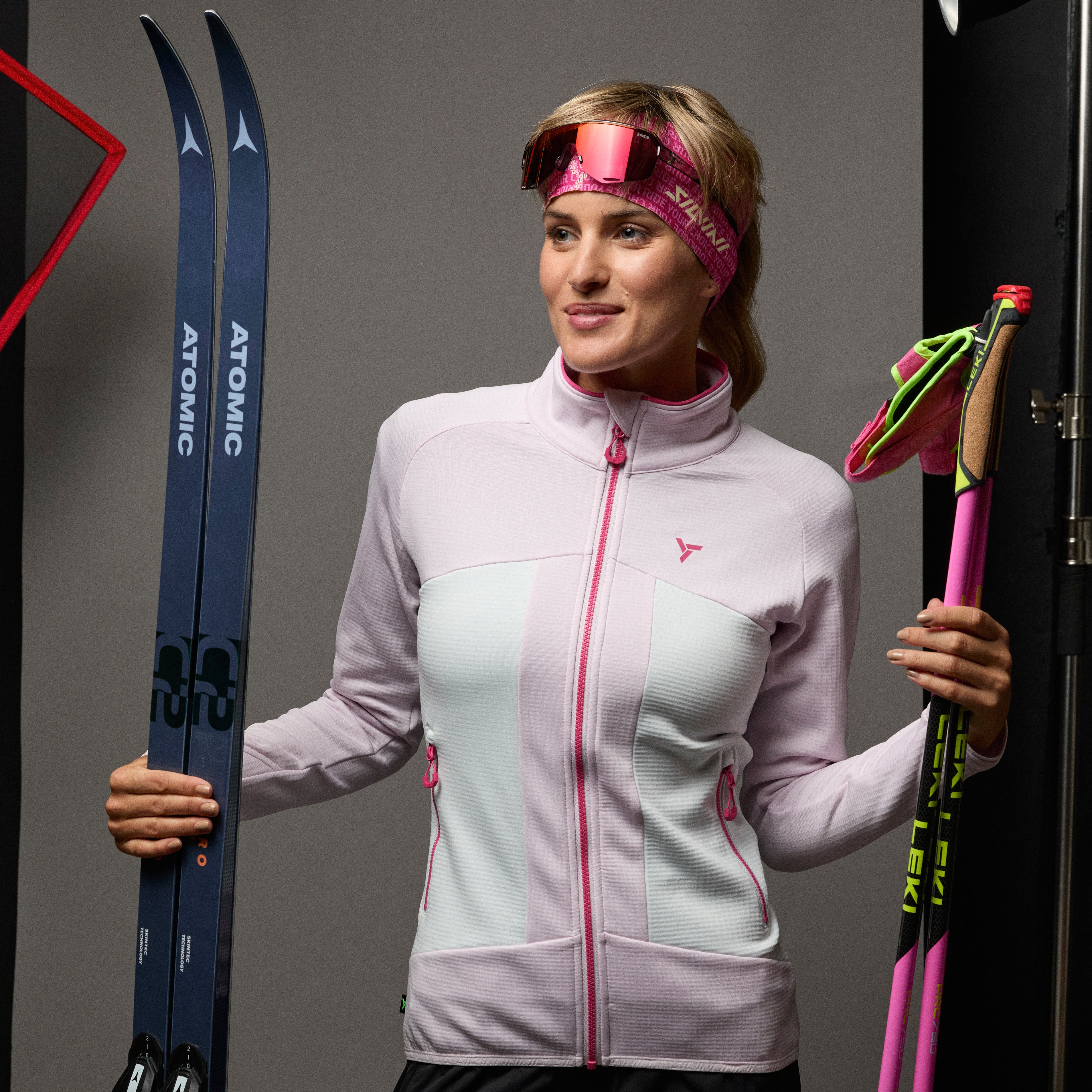 Dámská mikina Valdaora z Technical Fleece nabízí teplo, prodyšnost, pohodlí a volnost pohybu pro sport i volný čas.