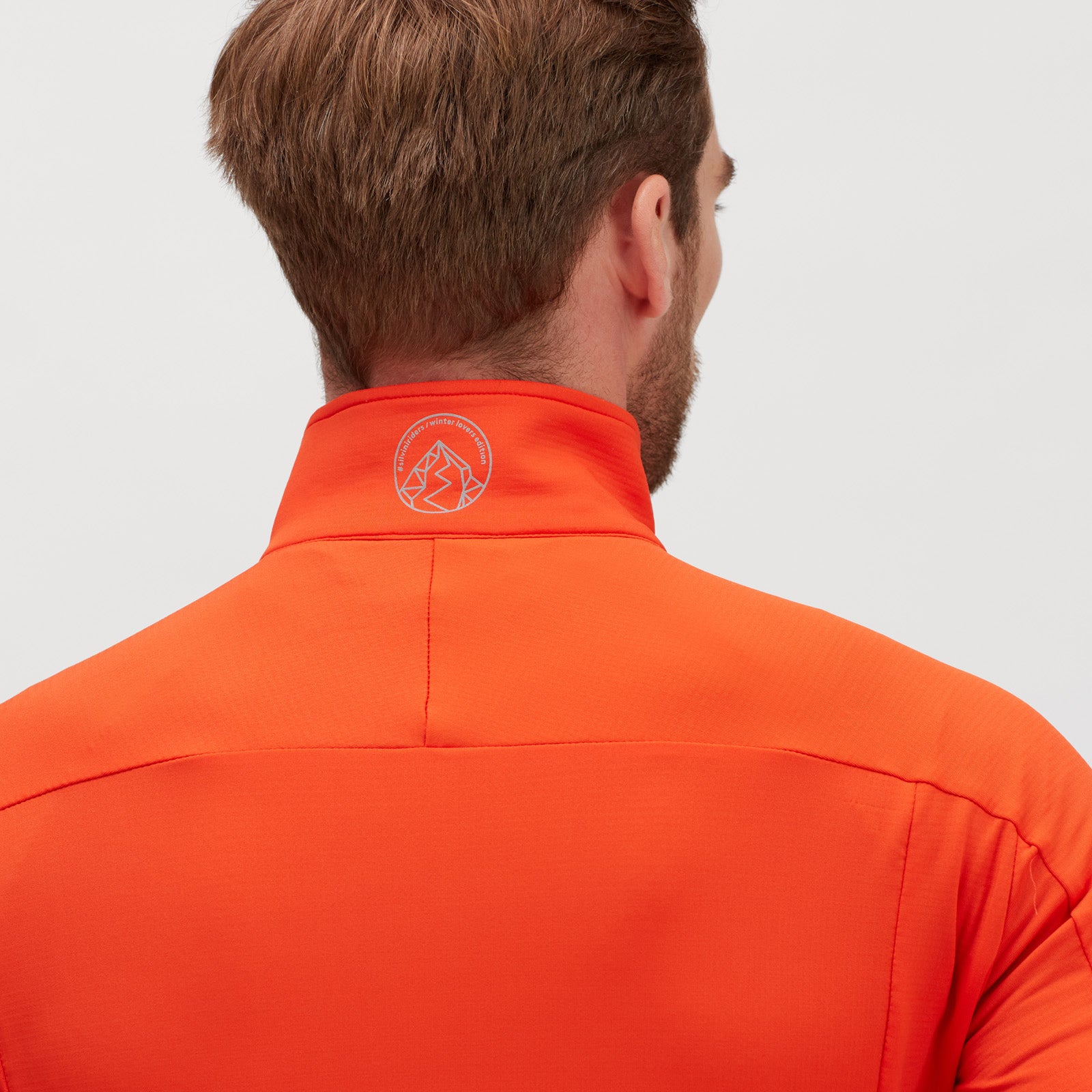 Men’s hoodie in elastic QuatroFLEX Therm, front insulated with Primaloft, with two zip pockets. Perfect as a mid-layer for ski touring, cross-country skiing, and other sports.