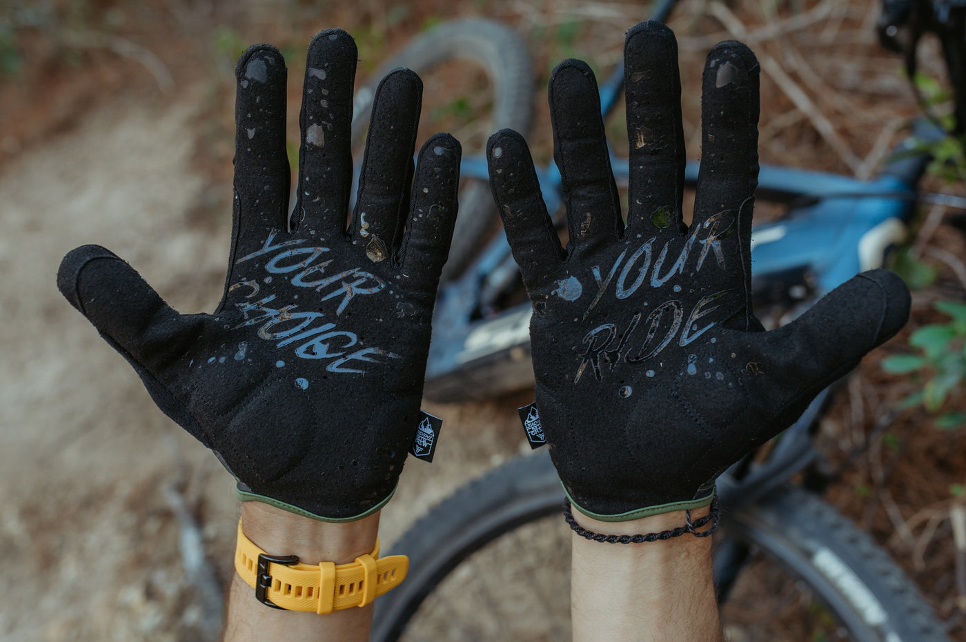 Men's MTB long finger gloves made of light and elastic upper material Light MESH. The palm is made of thin synthetic leather with soft foam padding. They have a Velcro closure.