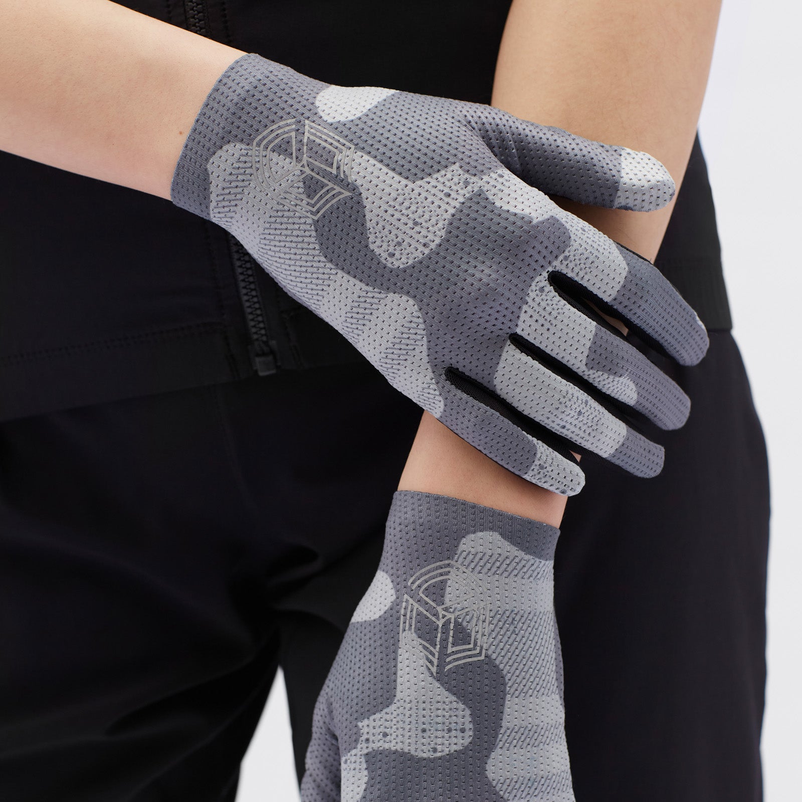 Dámské dlouhoprsté gravel rukavice vyrobené z pružného a prodyšného materiálu Light MESH na svrchní straně. Dlaň je vyrobena z umělé kůže a konečky prstů můžete ovládat jakýkoliv dotykový displej.