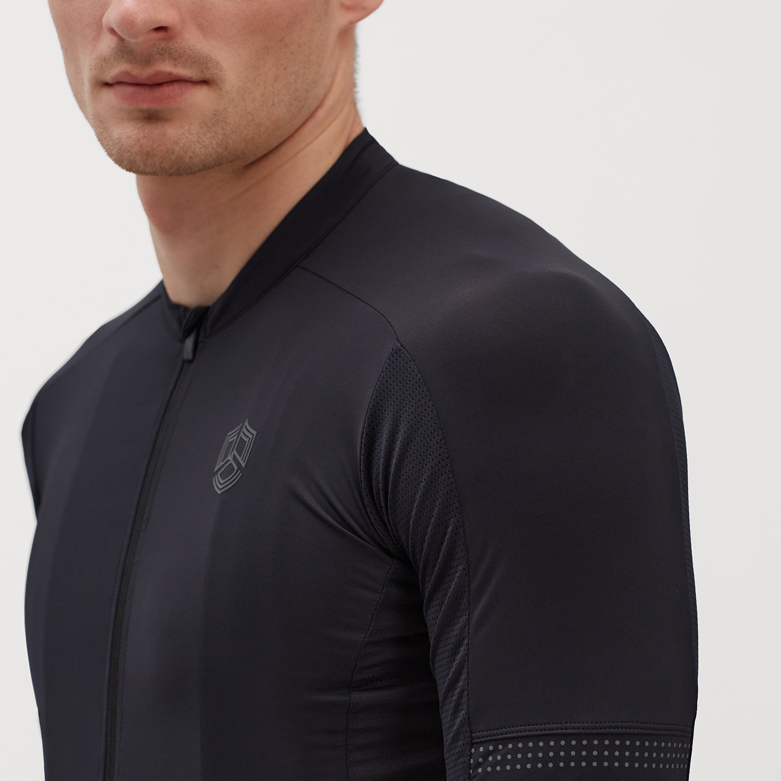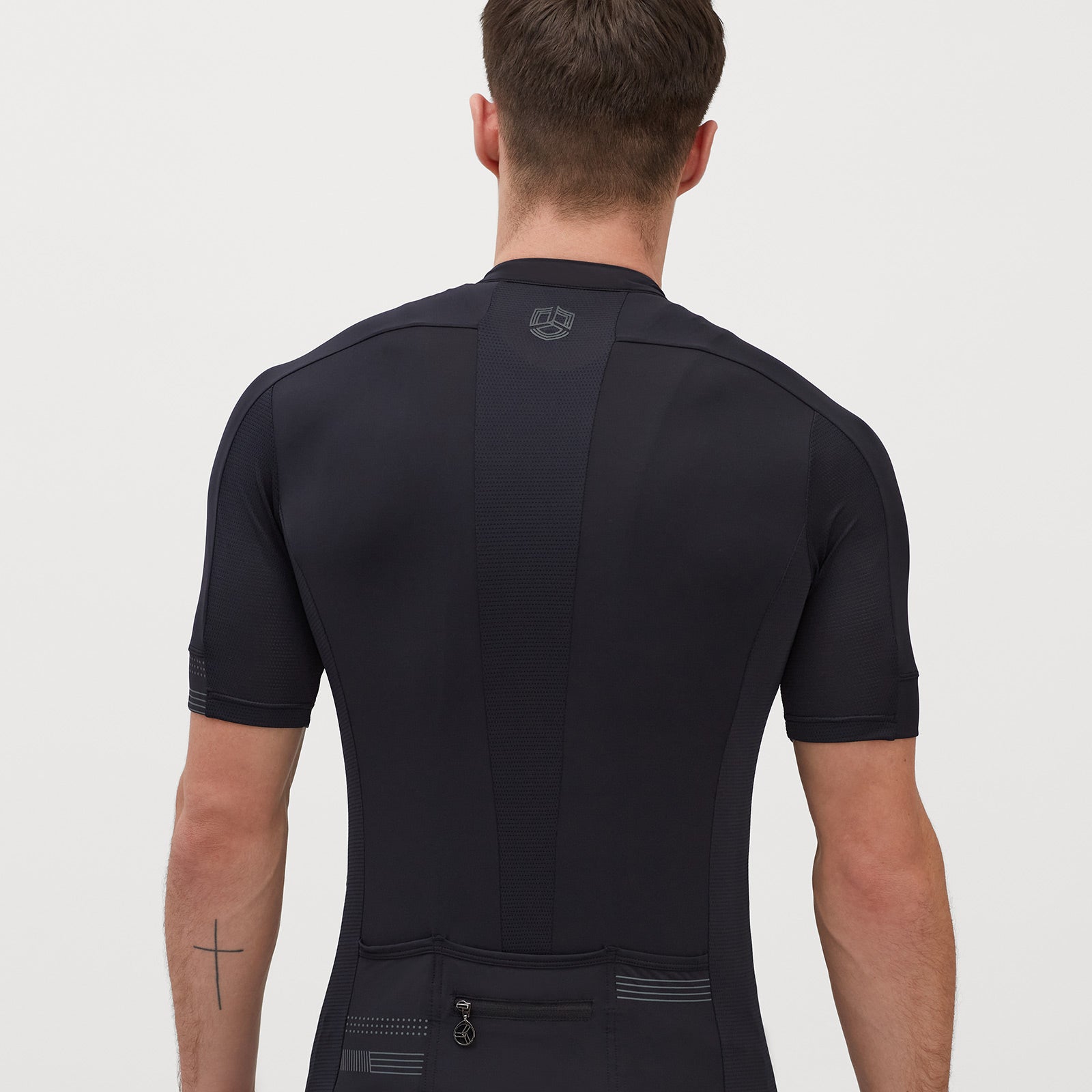 Pánský celopropínací cyklistický dres z prodyšného elastického materiálu Light MESH. Střih je mírně projmutý a na prodlouženém zadním díle je praktická trojkapsa a protiskluzový silikonový lem.