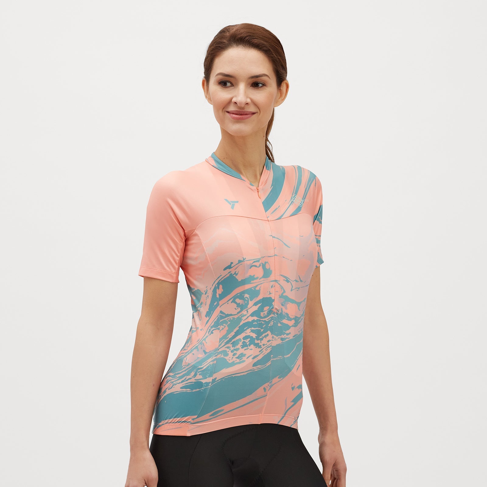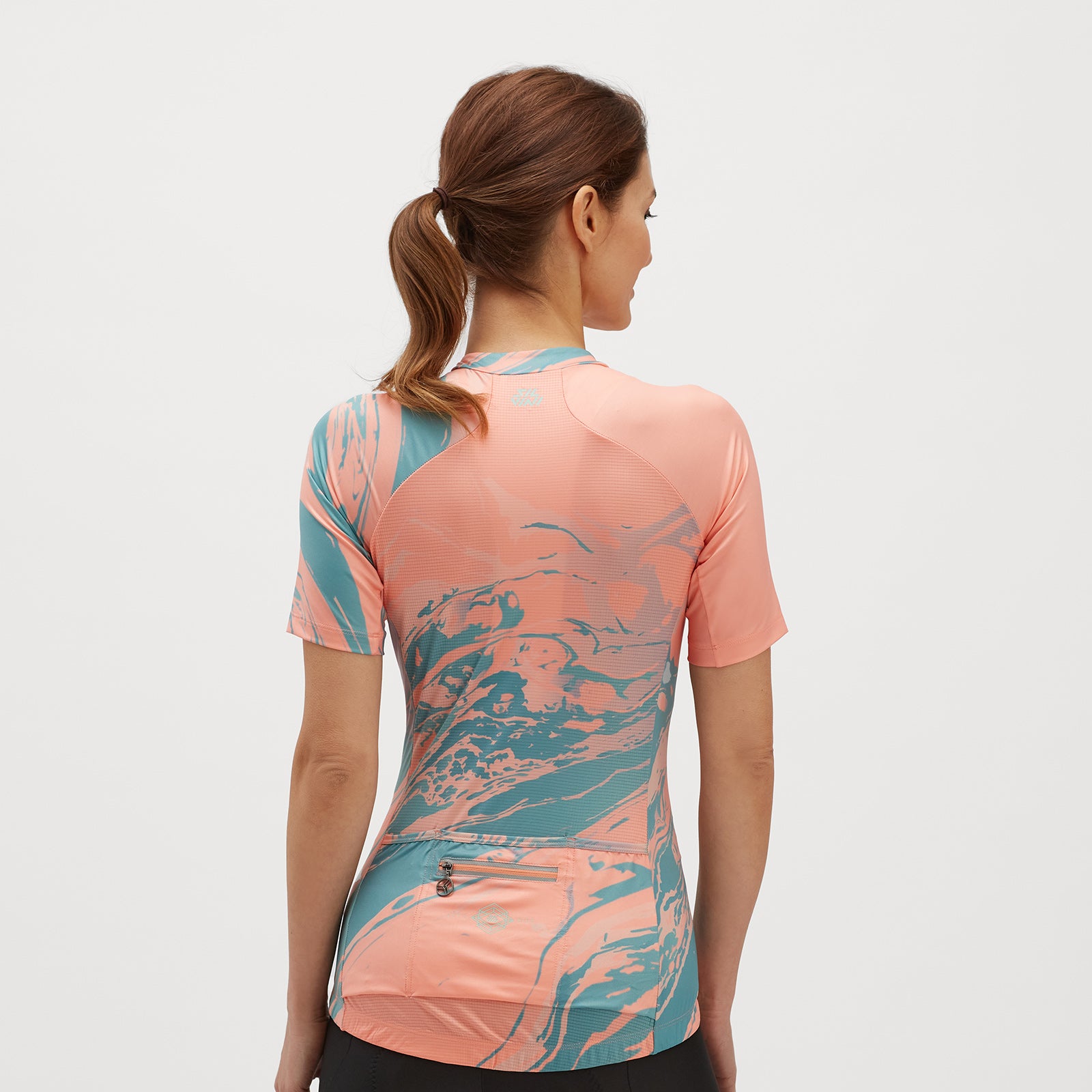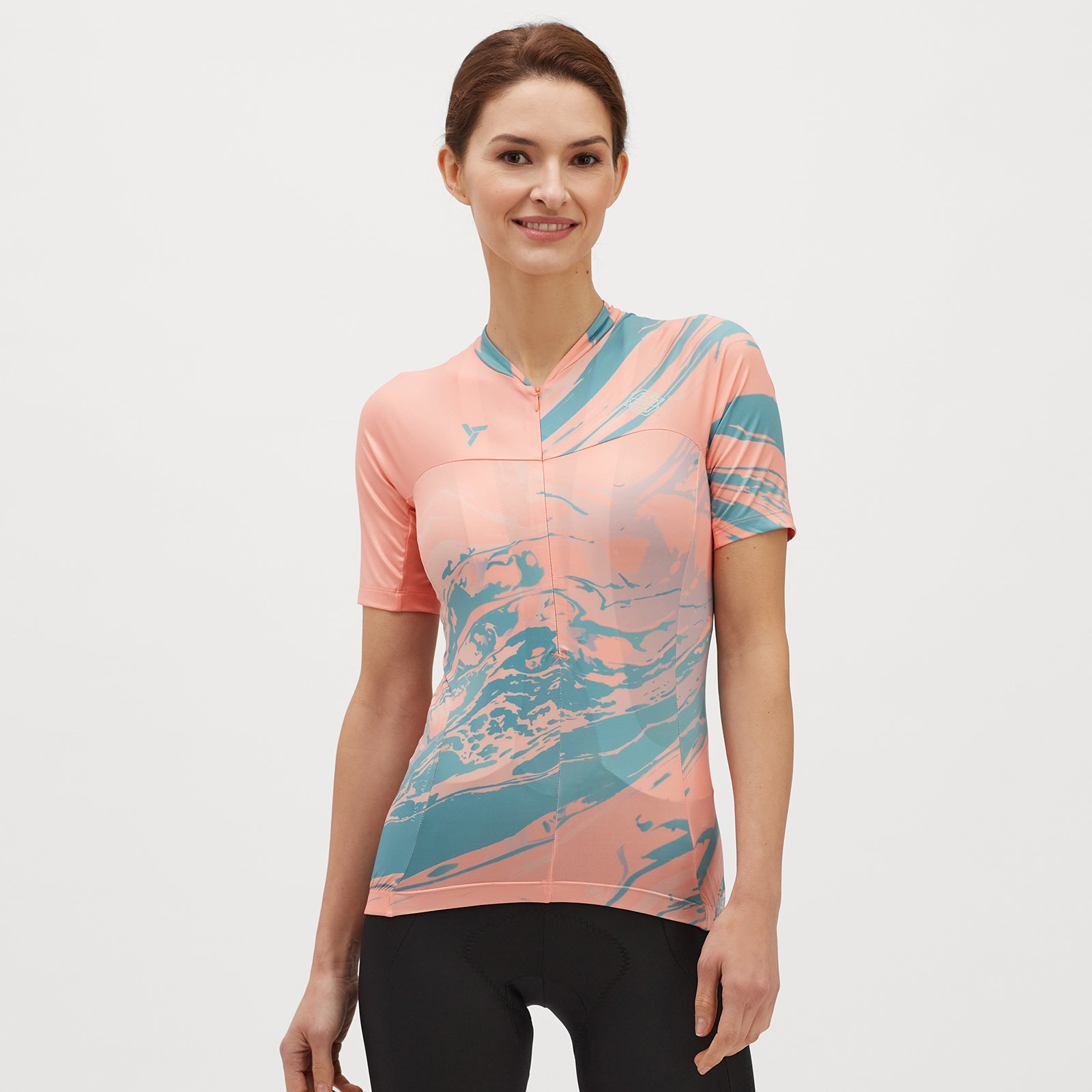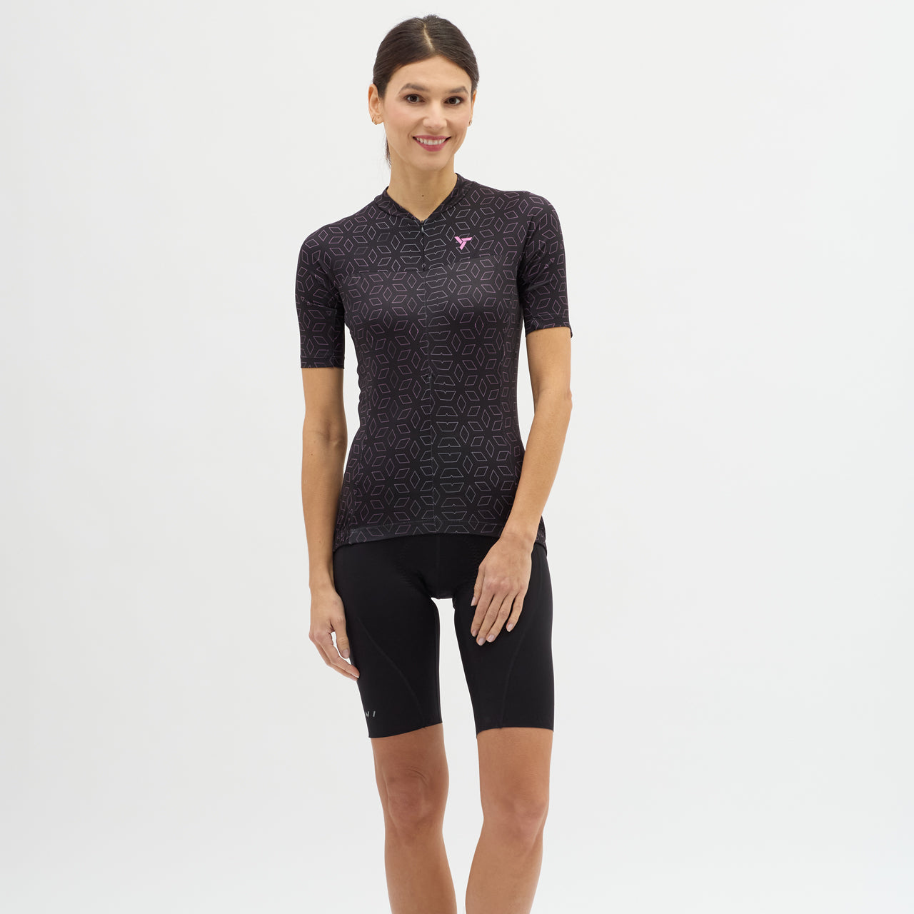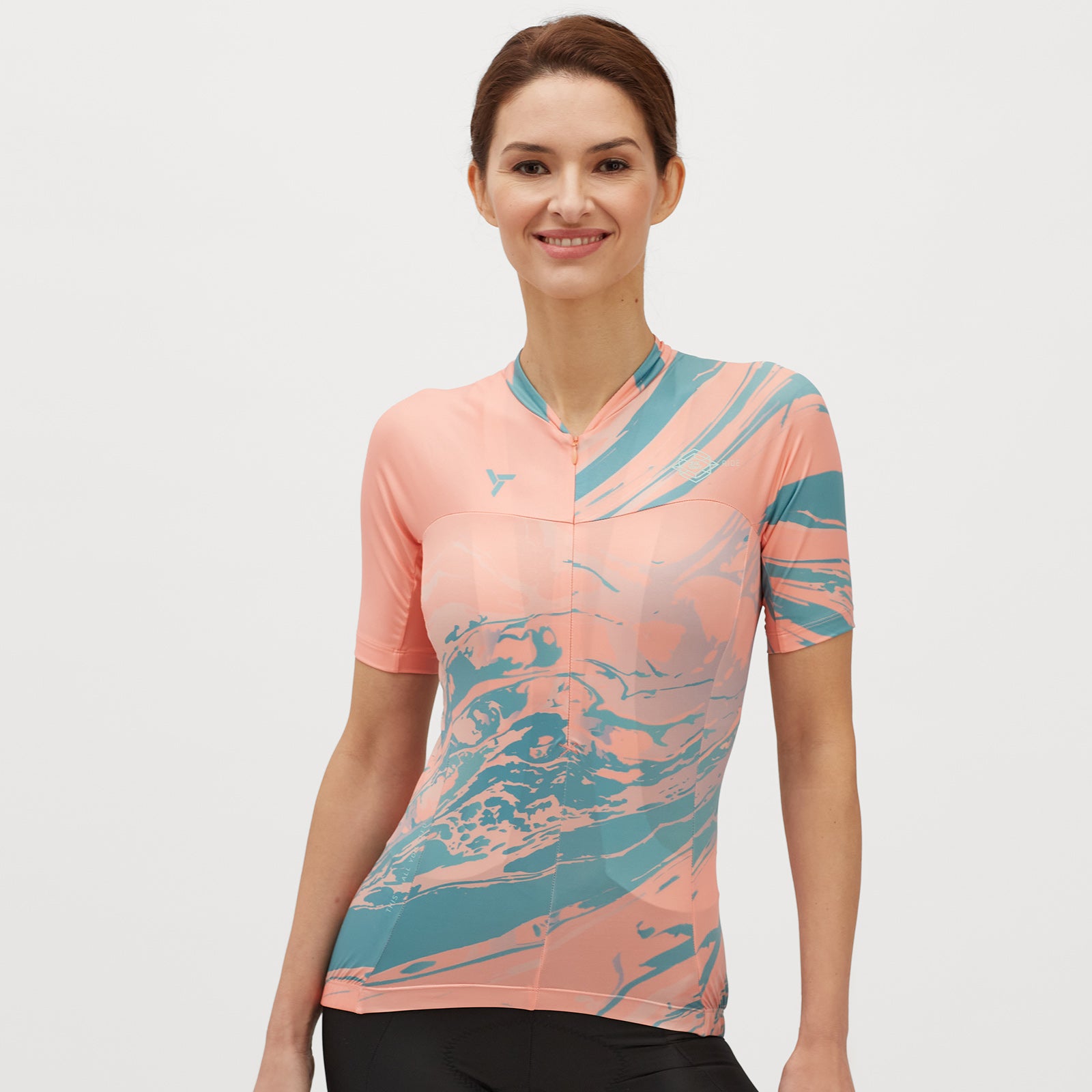 Catirina představuje dámský cyklistický elastický dres z prodyšného a rychleschnoucího materiálu Light MESH. Dres má užší střih, který zajišťuje pohodlné nošení při cyklistických výzvách. Je vybavena 3/4 skrytým YKK® zipem v přední části, který umožňuje snadnější oblékání a ventilaci při intenzivních jízdách. Pro stabilní polohu dresu po celou dobu jízdy je prodloužená zádová část opatřena silikonovým páskem. Klasická tříkapsa s menší prošitou kapsou na zip poskytuje dostatek úložného prostoru pro drobnosti a doplňky výživy. Samozřejmostí jsou ochranné reflexní prvky zvyšující viditelnost a bezpečnost za různých světelných podmínek. Kombinace designu a funkčnosti dělá z Catiriny ideálního společníka pro každého vášnivého cyklistu, který hledá kvalitní a stylový dres pro své cyklistické dobrodružství.