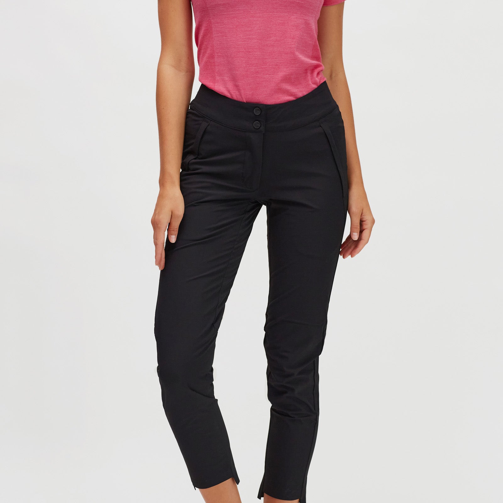 Dámské kalhoty Savelli, strečový Woven, guma vzadu, zapínání na zip, 2 kapsy, ohrnovací spodní lem s reflexními prvky, lehké, větruodolné, vhodné na outdoor i běžné nošení.