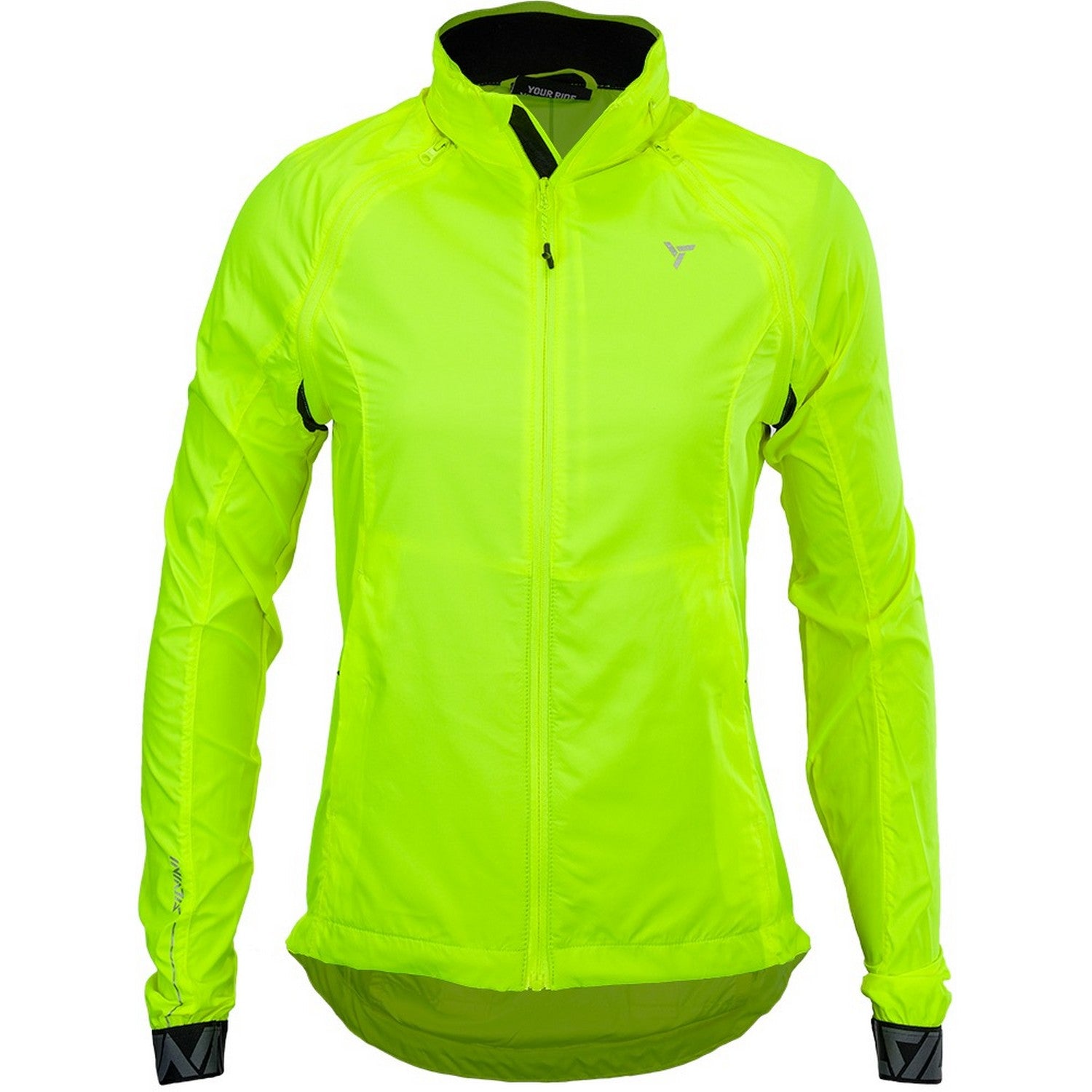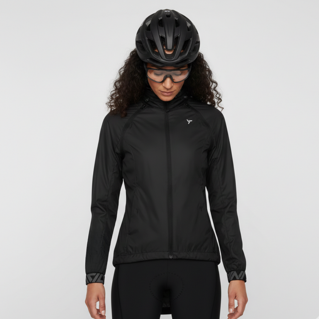 Women's windproof jacket made of Windbreaker material, packable in a small bag. By unbuttoning the sleeves, it turns into a vest, the hood can be folded into the collar. It has three zipped pockets, lower hem closure and reflexes.