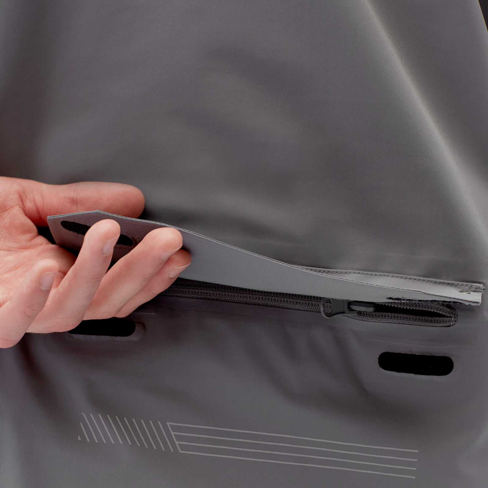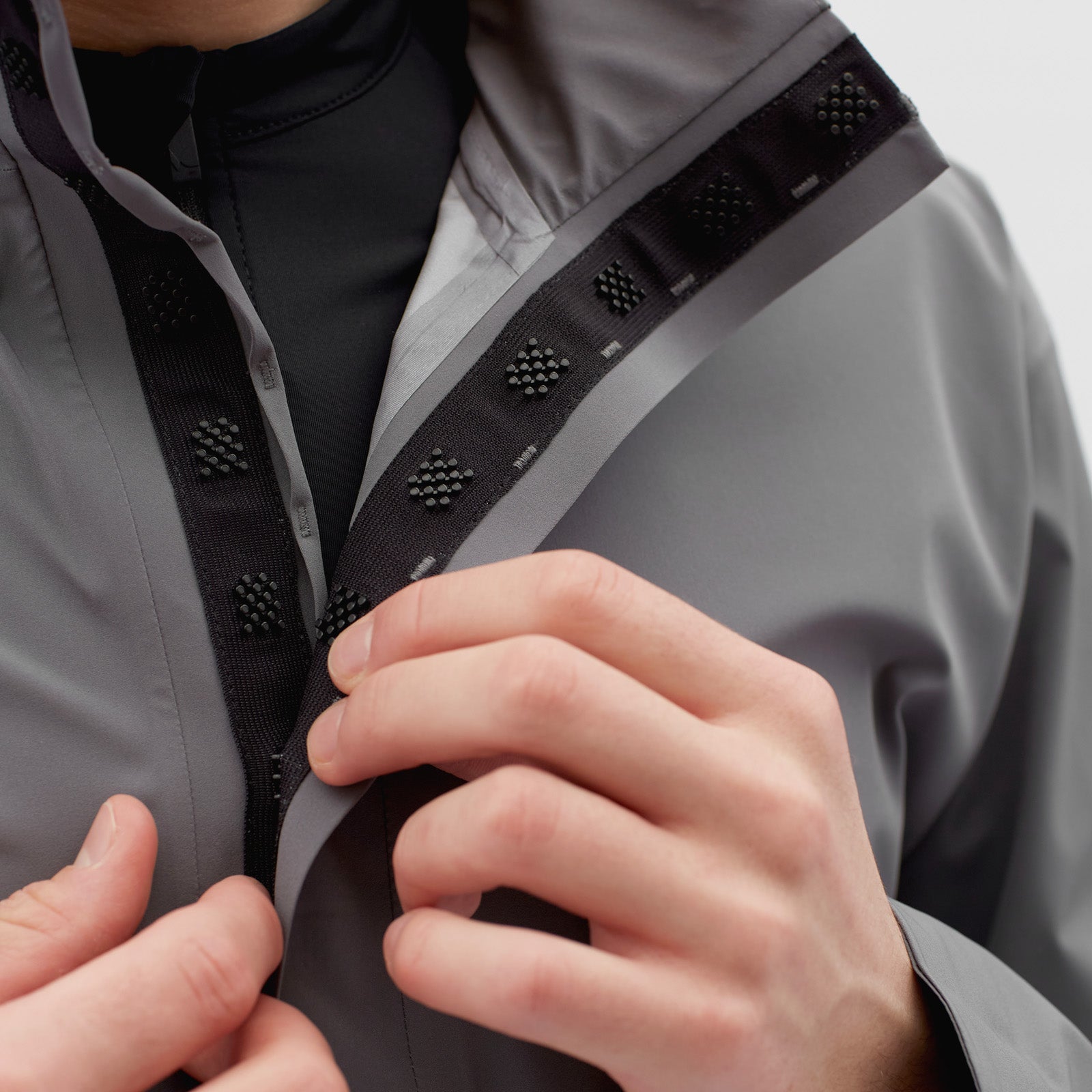 Men's jacket designed for riding a gravel bike, equipped with a powerful Power Strong membrane. It has a loose fit, an extended back, a detachable hood and several practical pockets and reflective elements.