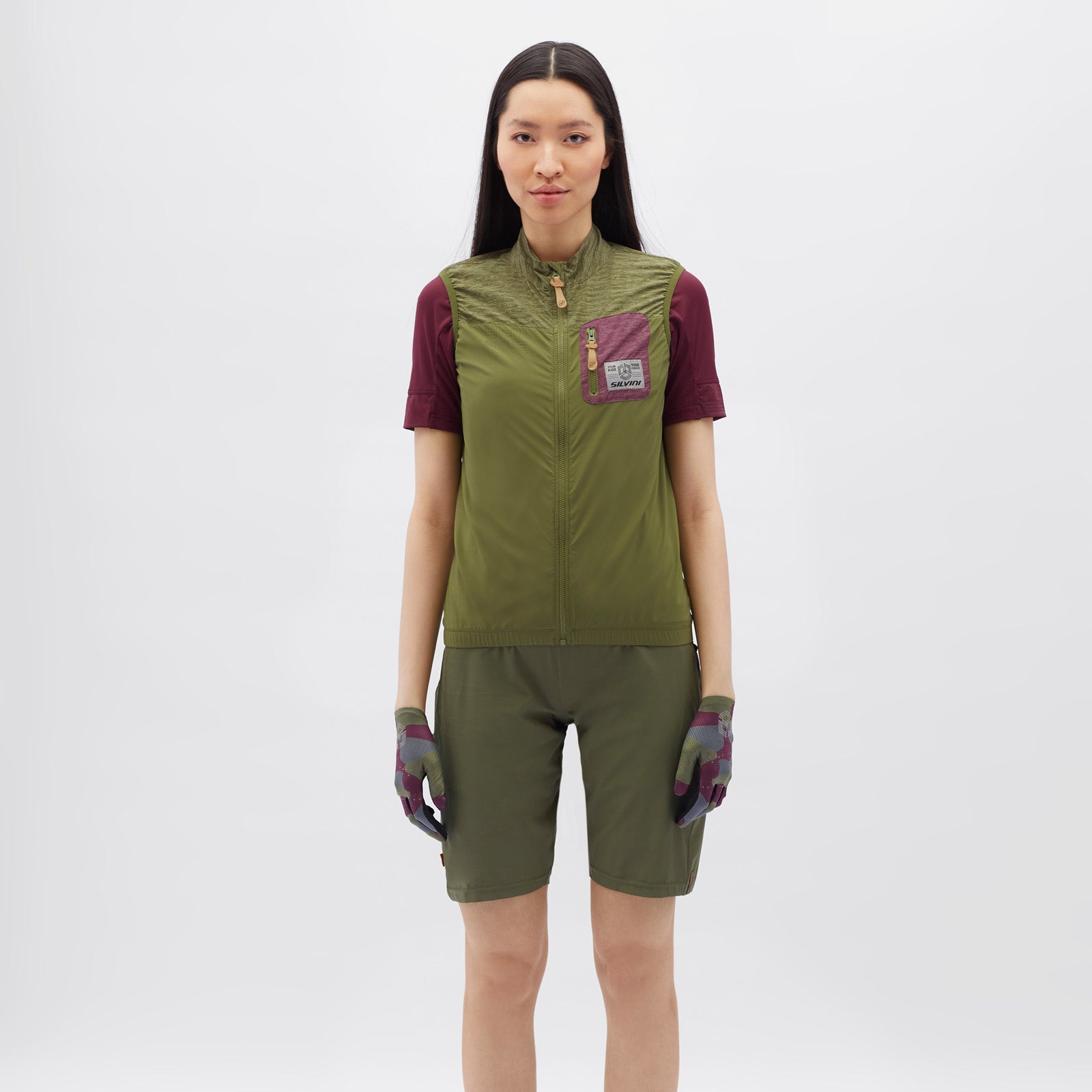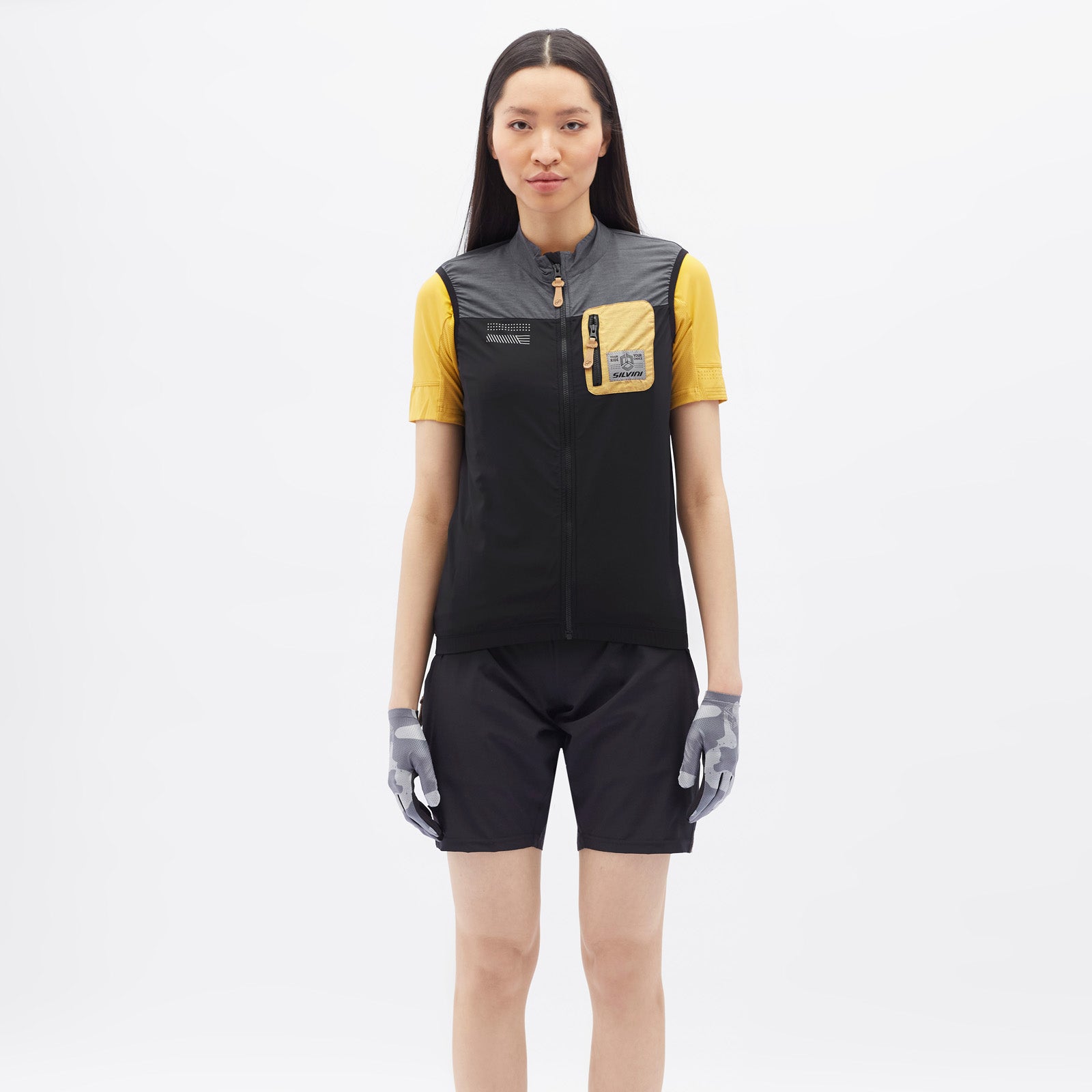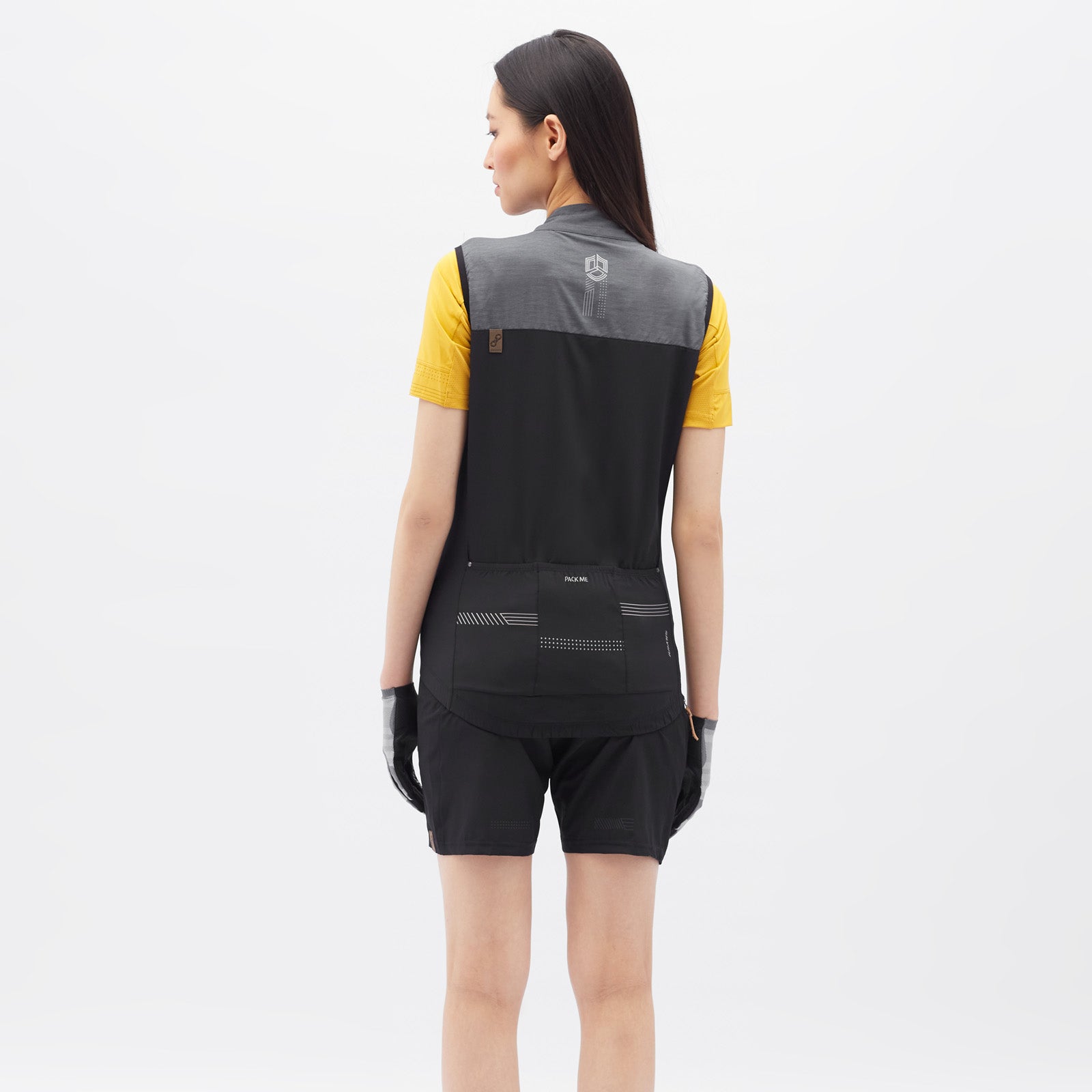 Women’s Cairo vest in lightweight, breathable Woven Light, slightly tailored, with three back pockets, zip pocket, and reflective details. Ideal for gravel biking and cycling.