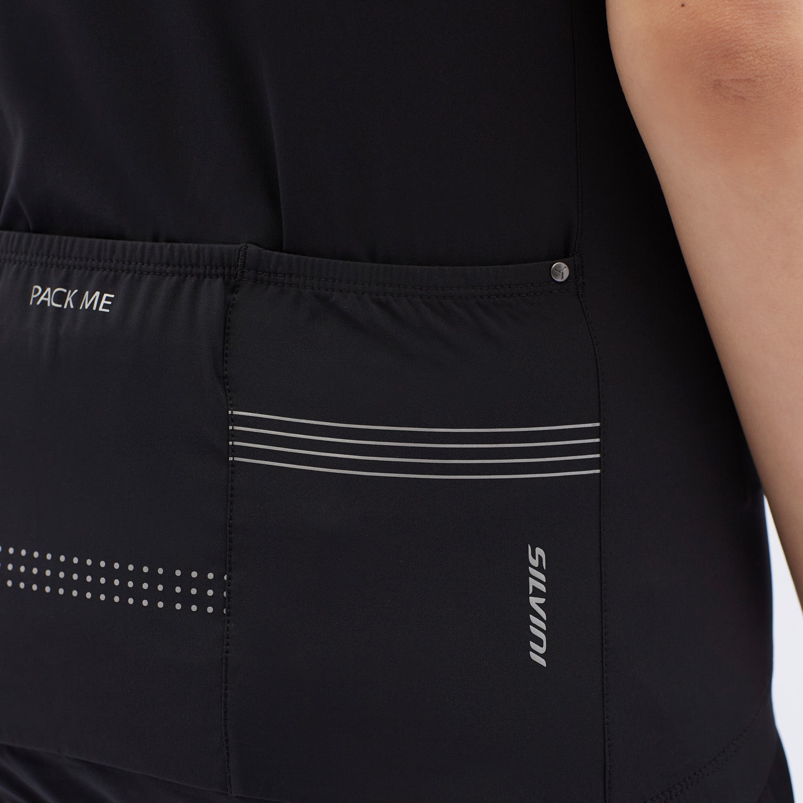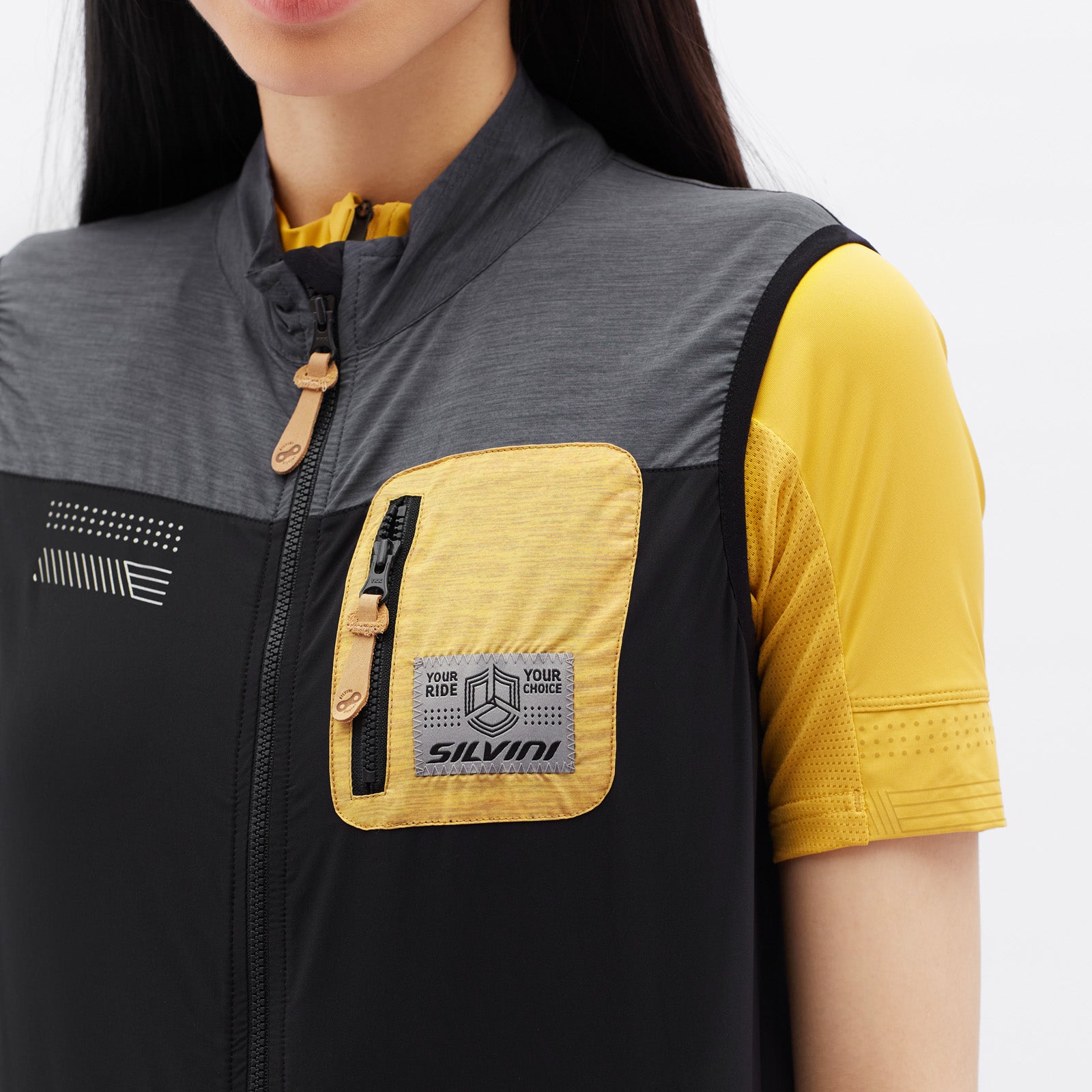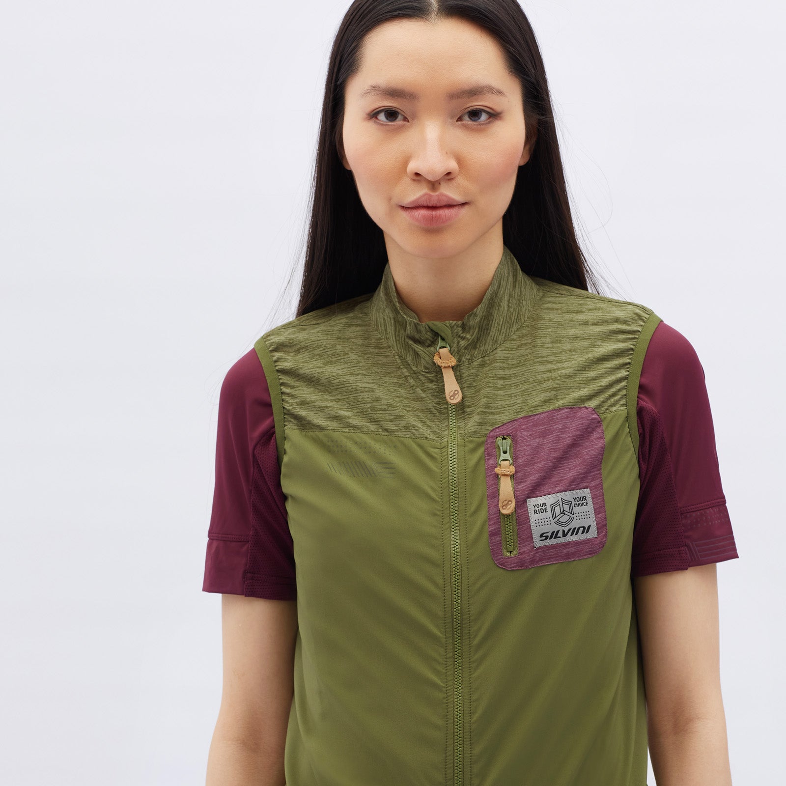 Women’s Cairo vest in lightweight, breathable Woven Light, slightly tailored, with three back pockets, zip pocket, and reflective details. Ideal for gravel biking and cycling.