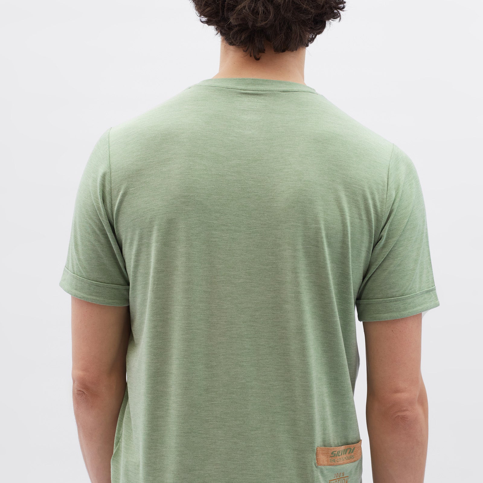 Calvisio men’s T-shirt made from soft recycled fabric with high modal content. Breathable, stretchy, with pocket and extended back, perfect for city life and leisure.