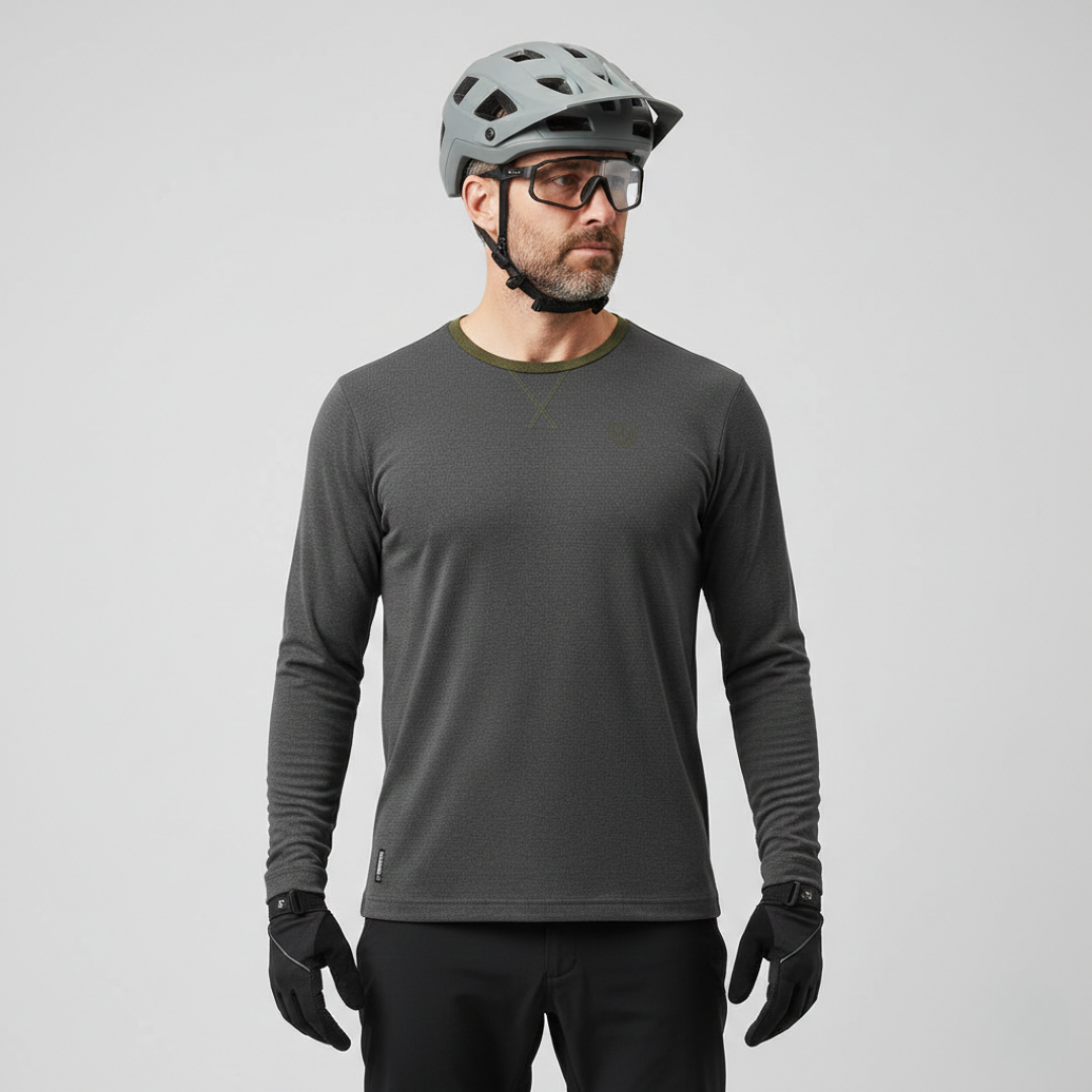 Men's elastic T-shirt with long sleeves, made of light and breathable Light MESH material. The T-shirt has a loose fit, has protective reflective elements and a stylish zip pocket in the back.