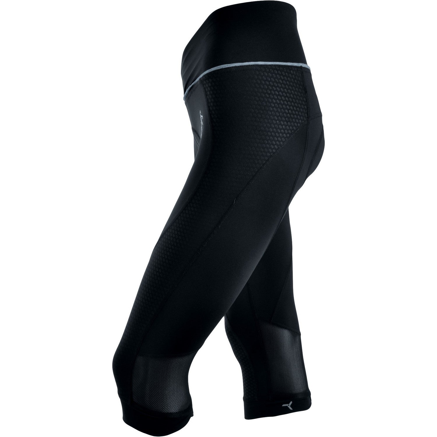 Tinella women’s 3/4 cycling shorts with Coolmax pad, high waistband, silicone anti-slip hem, and reflective details. Comfort, functionality, and safety for cycling.
