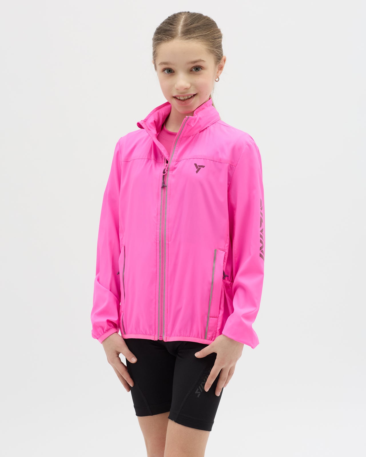 Dětská sportovní větrovka vyrobená z lehkého větruvzdorného a hustě tkaného materiálu Windbreaker. Možnost sbalení kapuce do límce či celé bundy do malého sáčku. Nechybí boční kapsy a reflexní prvky.