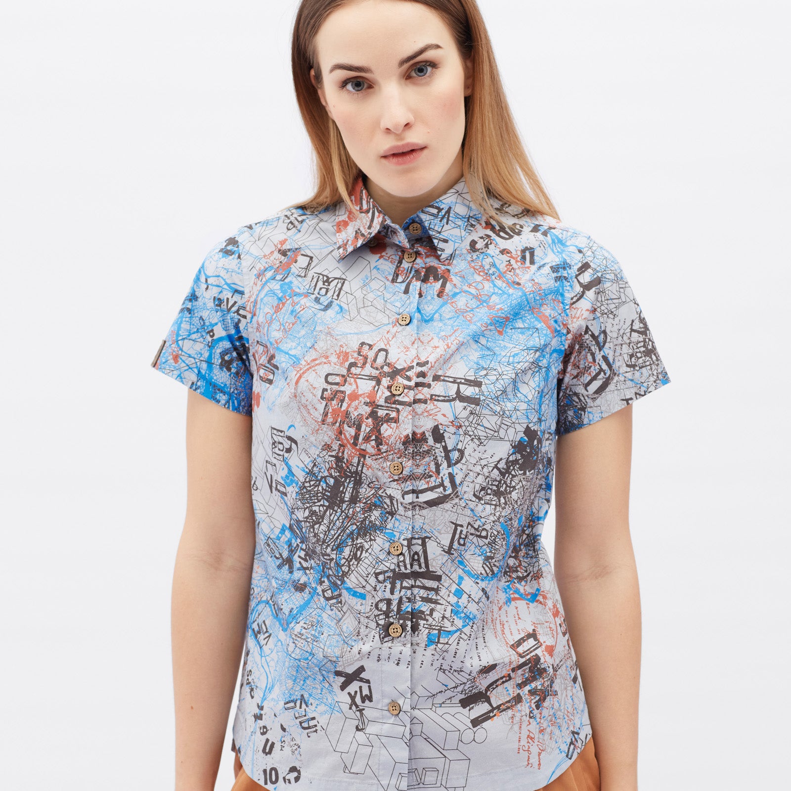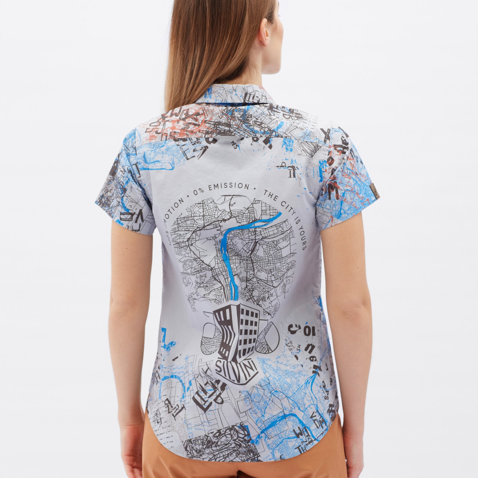 Dámská městská košile Montora s krátkým rukávem je vyrobena z lehkého bavlněného materiálu, který je prodyšný, mírně strečový a zajišťuje pohodlné nošení po celý den. Košile má mírně rozšířený střih a prodloužená záda, která poskytují optimální krytí a komfort při pohybu, zatímco nabraná záda zvyšují volnost pohybu. Na pravé straně je praktická vertikální kapsa na zip pro bezpečné uložení drobností. Přední stranu zdobí stylová filcová nášivka a košile je doplněna knoflíky z kokosových skořápek. Perforace v podpaží zajišťují dokonalé odvětrávání i v teplých dnech. Design je inspirován mapou Prahy a doplněn graffiti prvky spolu se sloganem „0% emise, 100% emoce“, který podtrhuje moderní městský styl. Díky kombinaci stylového designu, funkčních detailů a pohodlného střihu je dámská košile Montoro ideální volbou pro dojíždění na kole, pracovní schůzky i posezení s přáteli. Nechybí ani reflexní prvky, které zvyšují bezpečnost při pohybu ve městě.